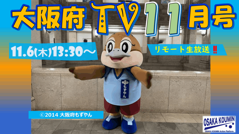 大阪府TV 11月号 2025年11月6日(木) 13時30分~リモート生配信!